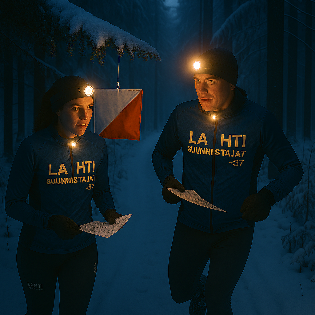 Jonkinlainen kommunikaatiokatkos oli pakkasherran kanssa tullut, kun korttelikuppi-iltana elohopea painui reilusti sen viitisen astetta luvattua alemmas. Onneksi suunnistajat taisivat pääosin selvitä vähemmillä vaurioilla kuin tekniikka...pienen ruuhkanpoikasen koneen hyytyminen kyllä hetkeksi aiheutti, mutta jollain pyhällä hengellä Juha sai sen kuitenkin lopulta kestämään (kahdella prosentilla) loppuun asti. ...